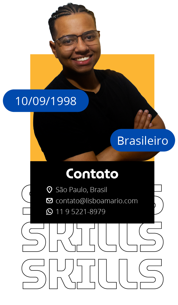 Sou Designer Multimídia a quase 10 anos, nascido no Brasil e com muita experiência em comunicação. Atualmente moro em São Paulo/Brasil, e possuo formação em Artes Visuais. Nada me deixa mais feliz do que ser o realizador de um projeto que impressiona e que traz resultados!